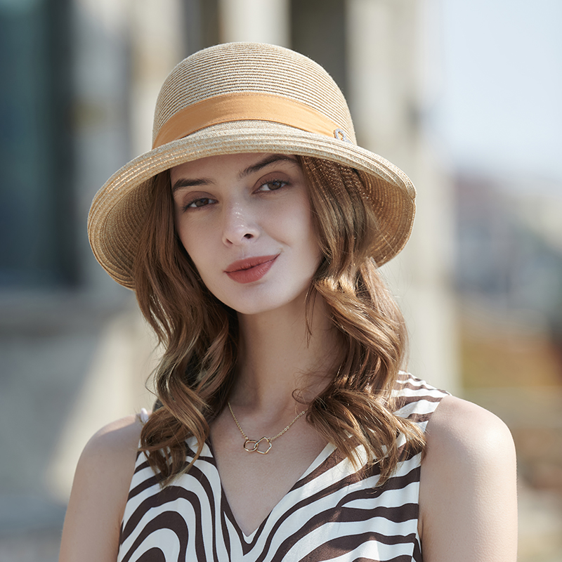 Zhejiang Kaijia Craft Co., Ltd. Home / Products / Hat Series / Straw bucket hat / Orange ribbon decorative straw hat spring and summer new leisure play beach hat woven female Korean version of the sun hat outdoor sun protection hat